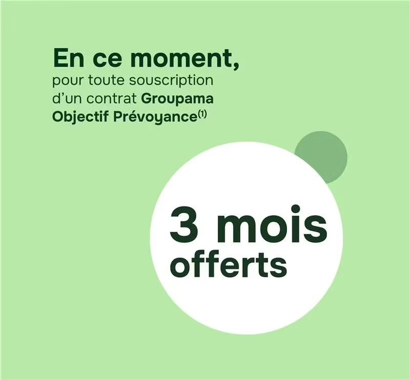 En ce moment : 3 mois offerts pour la souscription d'un Groupama Objectif Prévoyance (1)